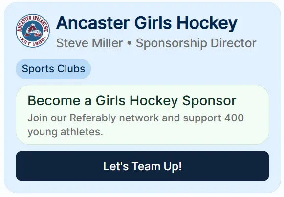 Teams and programs use Referably to highlight trusted supporters and partners. Opportunities are shared through real relationships, not cold outreach.