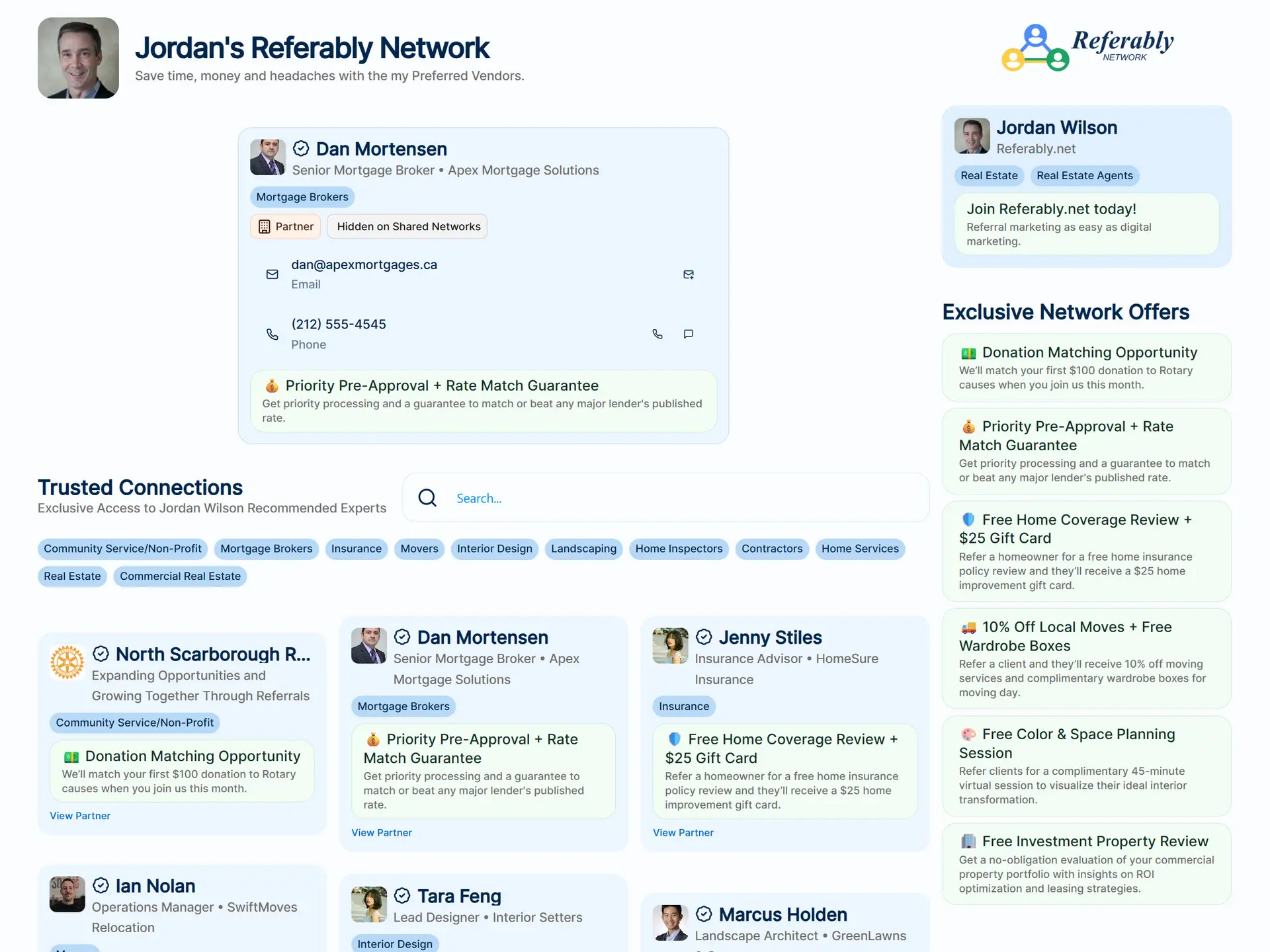 This is the Referably breakthrough. When a partners join your network, they don’t just get a listing—they gain a resource.