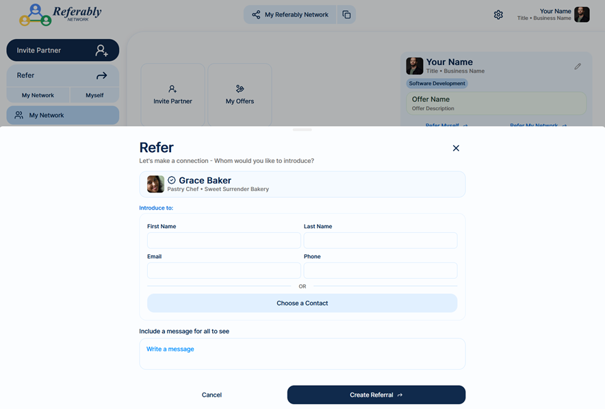 From there, you can select the trusted partner you wish to refer to and initiate the “Send Referral” process.