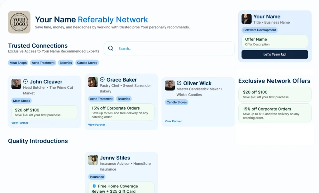 This streamlined “Referrer Handshaking” process makes it incredibly easy to connect clients with the right professionals in your network, reinforcing trust and facilitating successful collaborations.