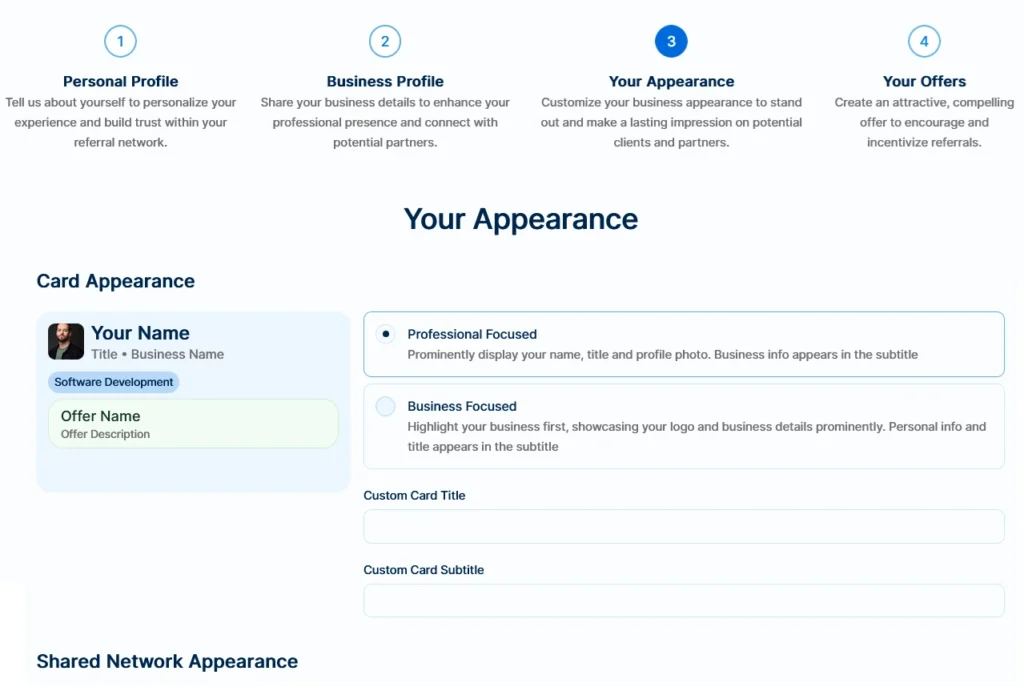 Your Network Page is the face of your brand on Referably.net. By adding a striking banner, uploading your company logo, and tailoring the overall look of your page, you create a polished and professional presence that makes your business stand out. A well-designed appearance reinforces your credibility, makes it easier for others to recognize your brand, and helps build trust with potential partners who visit your network. Consistent branding across your profile not only showcases your professionalism but also ensures your network reflects the quality and value of the referrals you provide.